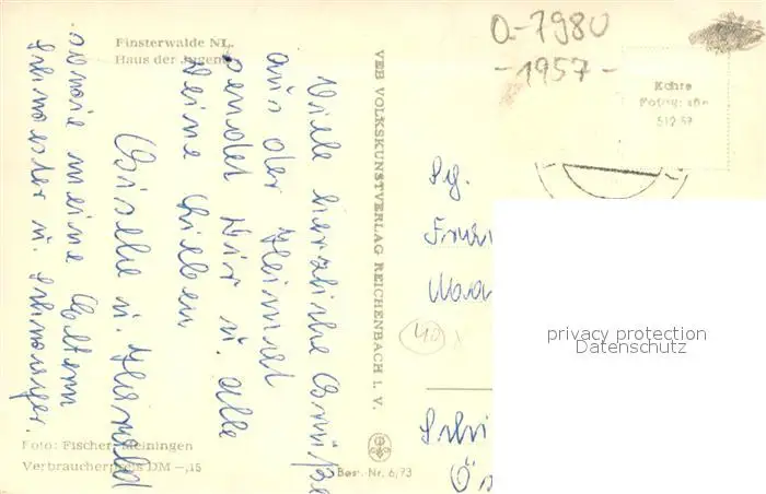 Finsterwalde Partie vor dem Haus der Jugend Finsterwalde postalisch gelaufen 1957 Erhaltung siehe scans [LiesaD40] LiesID40
