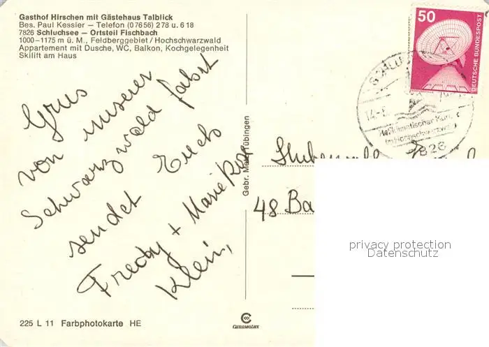 Fischbach Schluchsee Kategorie Alte Ansichtskarten Postkarten bx59028 Fischbach_Schluchsee Gasthof Hirschen mit Gaestehaus Talblick Fischbach Schluchsee postalisch gelaufen 1980 Erhaltung siehe scans [WerneD78]