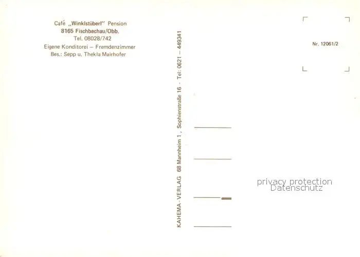 Fischbachau Café Pension Winklstueberl Terrasse Gastraum Fischbachau postalisch nicht gelaufen nach 1965 Erhaltung siehe scans [FriedD77] Frierer