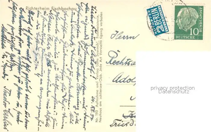 Fischbachau Richterheim Fischbachau postalisch gelaufen 1954 Erhaltung siehe scans [FriedD77] Frierer