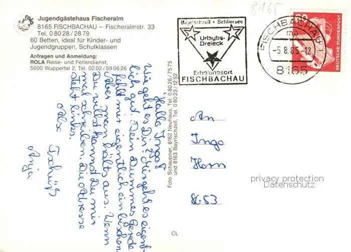 Fischbachau_Bayern Jugendgaestehaus Fischeralm postalisch gelaufen 1985 Erhaltung siehe scans [FriedD77] Frierer