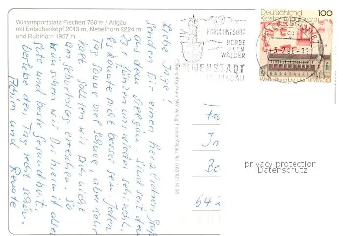 Fischen Allgaeu Entschenkopf Nebelhorn Rubihorn Fischen postalisch gelaufen 1998 Erhaltung siehe scans [PaolaD17] PaolPID1