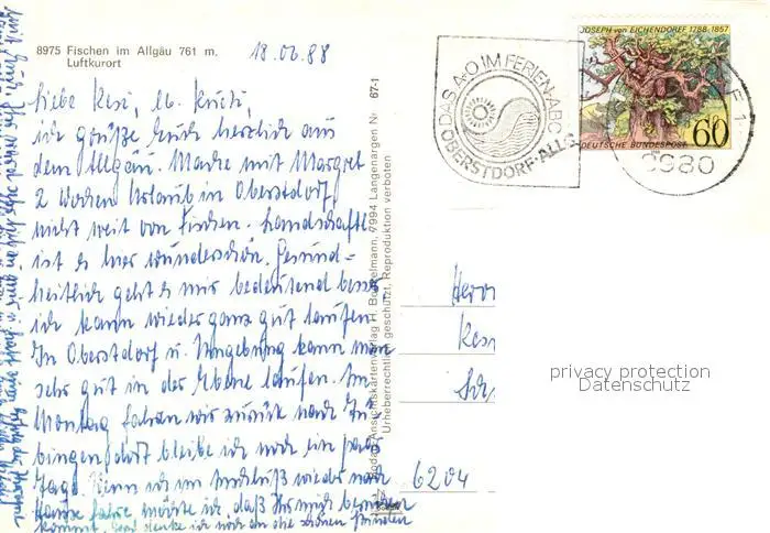 Fischen_Allgaeu Fliegeraufnahme Brunnen Kirchenpartie Fischen Allgaeu postalisch gelaufen 1988 Erhaltung siehe scans [LiesaD40] LiesID40