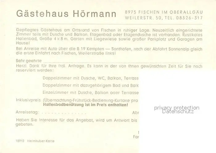 Fischen_Allgaeu Gaestehaus Hoermann Gaststube Treppe Hallenbad Gaestezimmer Fischen Allgaeu postalisch nicht gelaufen nach 1965 Werbekarte (keine Postkarte) Erhaltung siehe scans [WerneD78] Werbekarte (keine Postkarte) WernPID7