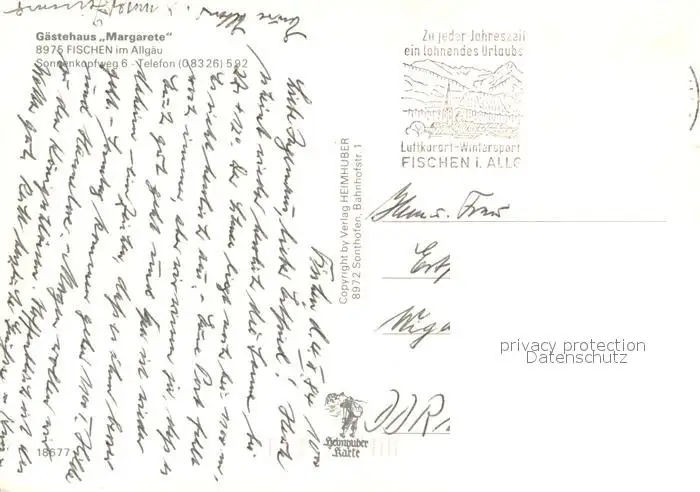 Fischen_Allgaeu Gaestehaus Margarete Gastraeume Fischen Allgaeu postalisch gelaufen 1984 Erhaltung siehe scans [WerneD78] WernPID7