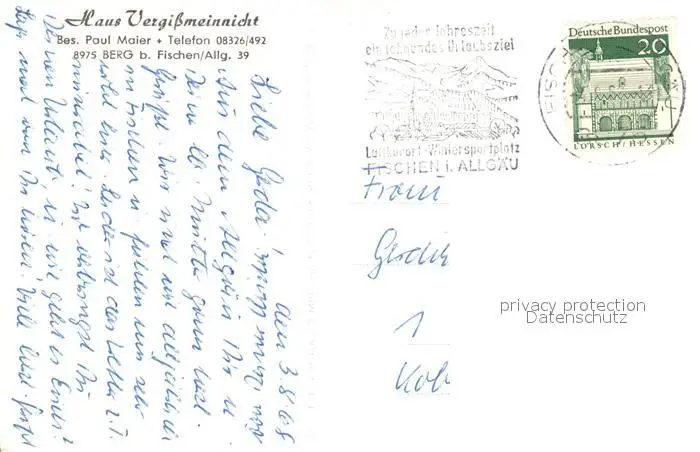 Fischen_Allgaeu Haus Vergissmeinnicht Fischen Allgaeu postalisch gelaufen 1968 Erhaltung siehe scans [KathaD81] Kathoren