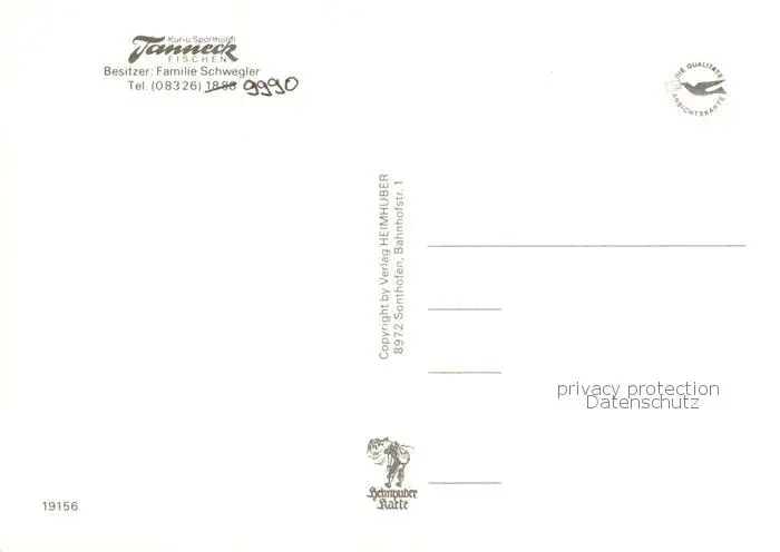 Fischen_Allgaeu Kur und Sporthotel Tanneck Fischen Allgaeu postalisch nicht gelaufen nach 1965 Erhaltung siehe scans [WerneD78] WernPID7
