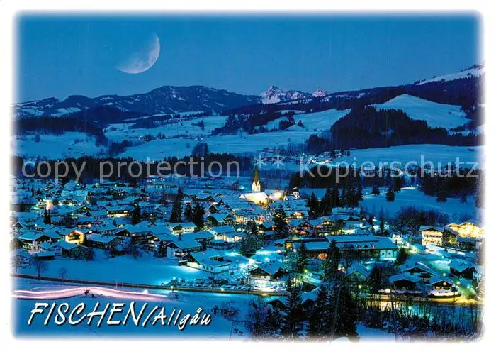 AK / Ansichtskarte Fischen_Allgaeu mit Entschenkopf Nebelhorn und Rubihorn bei Nacht Fischen Allgaeu