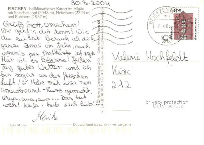 Fischen_Allgaeu mit Entschenkopf Nebelhorn und Rubihorn bei Nacht Fischen Allgaeu postalisch gelaufen 2004 Erhaltung siehe scans [WerneD78] WernPID7