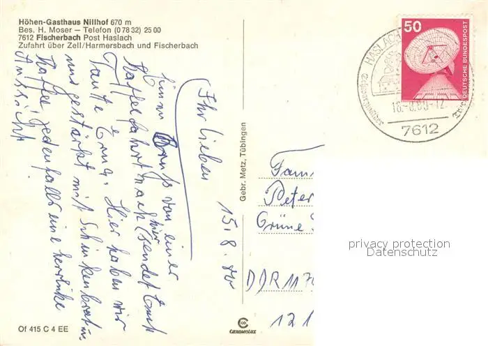 Fischerbach Hoehengasthaus Nillhof Gastraeume Panorama Fischerbach postalisch gelaufen 1980 Erhaltung siehe scans [FriedD77] Frierer
