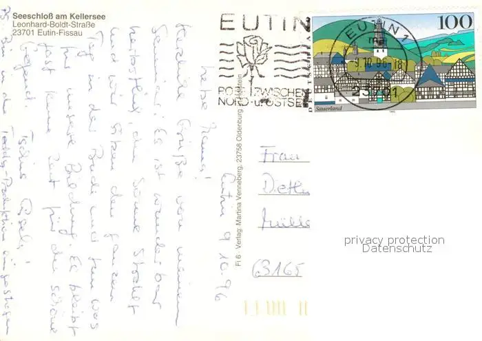 Fissau Seeschloss am Kellersee Fissau postalisch gelaufen 1996 Erhaltung siehe scans [PaolaD17] PaolPID1