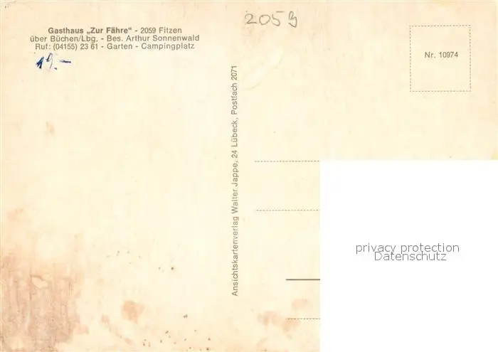 Fitzen Gasthaus Zur Faehre Campingplatz Faehre Garten Fitzen postalisch nicht gelaufen nach 1965 Erhaltung siehe scans [WerneD78] WernPID7
