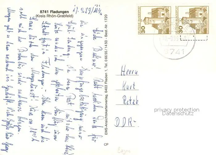 Fladungen Brunnen Kirche Marktplatz Fachwerkhaus Stadtmauer Turm Fladungen postalisch gelaufen 1989 Erhaltung siehe scans [FriedD77] Frierer
