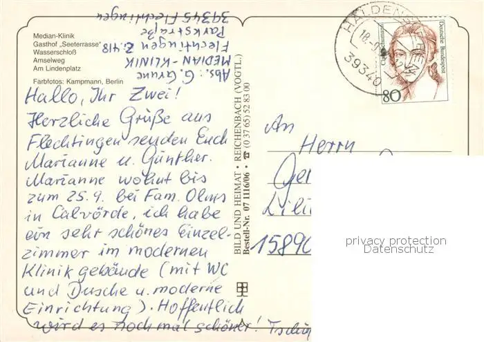 Flechtingen Median Klinik Gasthof Seeterrasse Wasserschloss Amselweg Am Lindenplatz Flechtingen postalisch gelaufen nach 1965 Erhaltung siehe scans [WerneD78] WernPID7