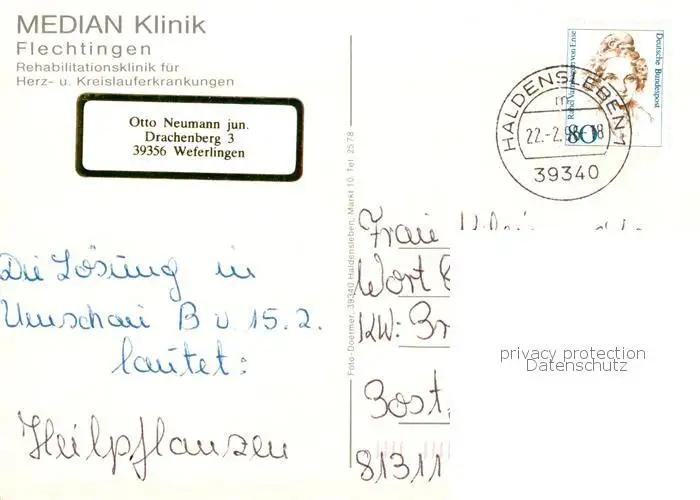 Flechtingen Median Reha Klinik Speisesaal Hallenbad Aufenthaltsraum Flechtingen postalisch gelaufen nach 1965 Erhaltung siehe scans [WerneD78] WernPID7