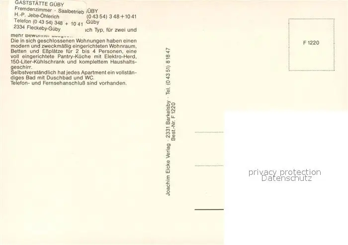 Fleckeby Gaestehaus Gueby Landschaftspanorama Fleckeby postalisch nicht gelaufen nach 1965 Erhaltung siehe scans [FriedD77] Frierer
