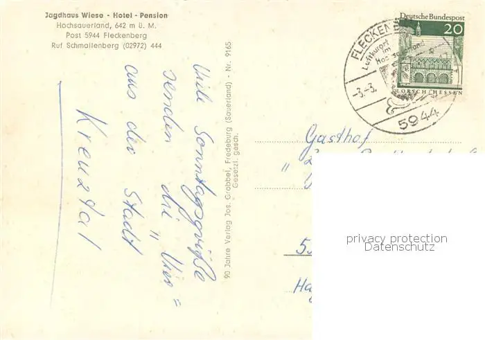 Fleckenberg Jagdhaus Wiese Hotel PEnsion Innenansicht-Stube Fleckenberg postalisch gelaufen nach 1965 Erhaltung siehe scans [LiesaD40] LiesID40