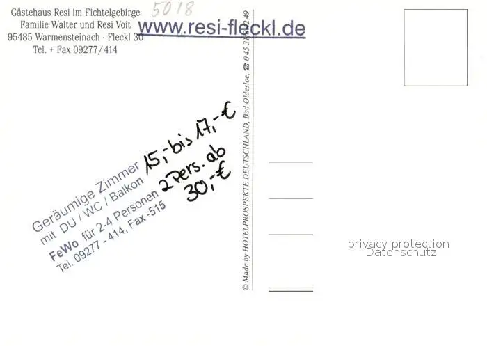 Fleckl Gaestehaus Resi im Fichtelgebirge Fleckl postalisch nicht gelaufen nach 1965 Erhaltung siehe scans [FriedD77] Frierer