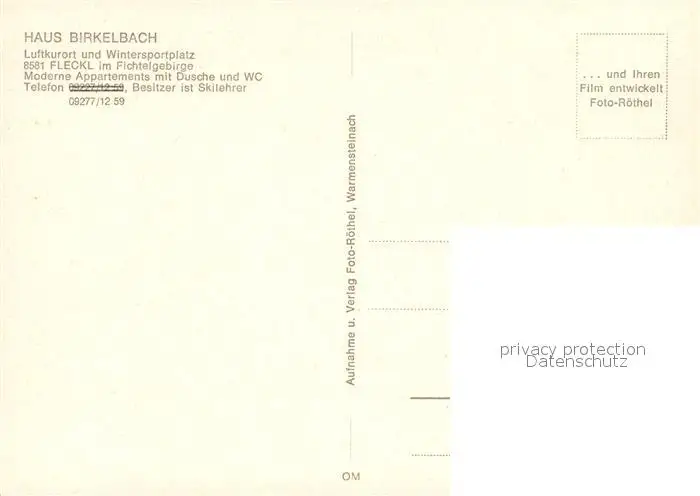 Fleckl Haus Birkelbach Fleckl postalisch nicht gelaufen nach 1965 Erhaltung siehe scans [WerneD78] WernPID7