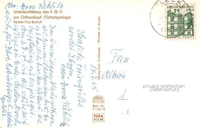 Fleckl Ochsenkopfhaus Unterkunftshaus des F.G.V. im Fichtelgebirge Fleckl postalisch gelaufen 1965 Erhaltung siehe scans [FriedD77] Frierer