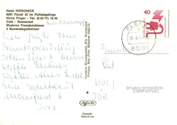 Fleckl_Oberwarmensteinach Fliegeraufnahme mit Hotel Hirscheck postalisch gelaufen 1977 Erhaltung siehe scans [WerneD78] WernPID7