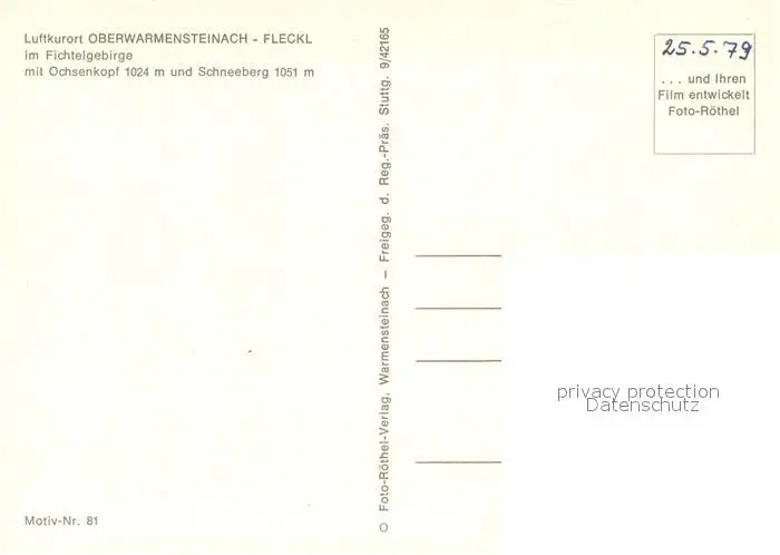 Fleckl_Oberwarmensteinach Fliegeraufnahme mit Ochsenkopf und Schneeberg postalisch nicht gelaufen 1979 Erhaltung siehe scans [WerneD78] WernPID7