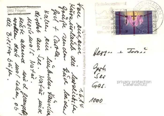 Floegeln Gaststaette Partie an der Aussenweser Campingplatz Segeln Steingrab Floegeln postalisch gelaufen 1984 Erhaltung siehe scans [FriedD77] Frierer
