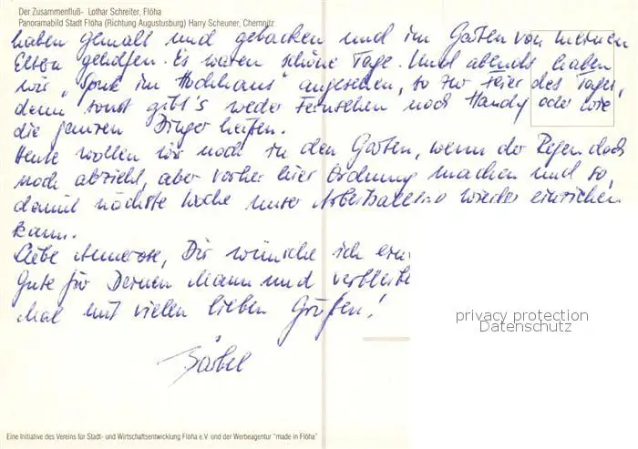 Floeha Zusammenfluss von Zschopau und Floeha Stadtpanorama Wappen Floeha postalisch nicht gelaufen nach 1965 Erhaltung siehe scans [FriedD77] Frierer