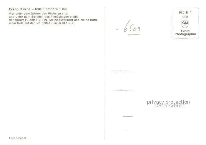 Flomborn Evangelische Kirche Innenansicht Psalm Flomborn postalisch nicht gelaufen nach 1965 Erhaltung siehe scans [FriedD77] Frierer