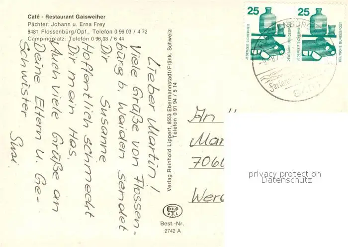 Flossenbuerg Cafe Restaurant Gaisweiher Gaststube Terrasse Flossenbuerg postalisch gelaufen 1979 Erhaltung siehe scans [WerneD78] WernPID7