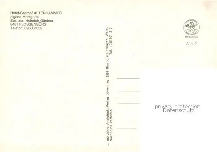Flossenbuerg Hotel Gasthof Altenhammer Flossenbuerg postalisch nicht gelaufen nach 1965 Erhaltung siehe scans [FriedD77] Frierer