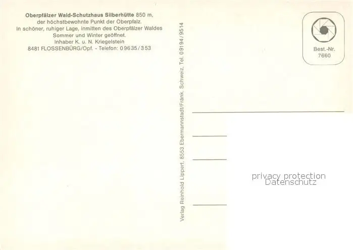 Flossenbuerg Oberpfaelzer Wald Schutzhaus Silberhuette Flossenbuerg postalisch nicht gelaufen nach 1965 Erhaltung siehe scans [WerneD78] WernPID7