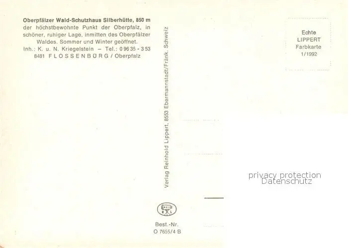 Flossenbuerg Oberpfaelzer Wald Schutzhaus Silberhuette Gaststube Zimmer Terrasse Flossenbuerg postalisch nicht gelaufen nach 1965 Erhaltung siehe scans [WerneD78] WernPID7