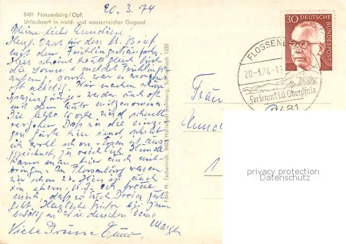 Flossenbuerg Teilansichten Brunnen Kirche Turm Partie am Wasser Flossenbuerg postalisch gelaufen 1974 Erhaltung siehe scans [FriedD77] Frierer