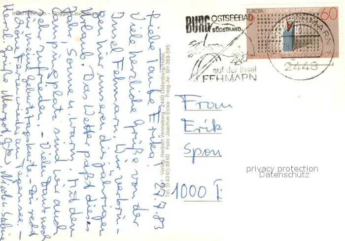 Fluegge_Fehmarn Leuchtturm Ostseeinsel Fliegeraufnahme Fluegge Fehmarn postalisch gelaufen 1983 Erhaltung siehe scans [FriedD77] Frierer