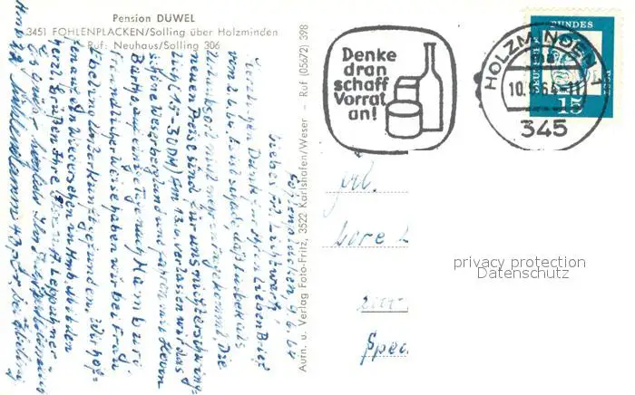 Fohlenplacken Pension Duwel Fohlenplacken postalisch gelaufen 1964 Erhaltung siehe scans [KathaD81] Kathoren