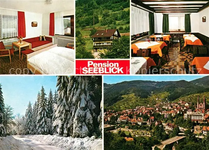 Forbach_Baden Stadtpanorama Pension Seeblick Waldpartie im Winter Schwarzwald Forbach_Baden postalisch nicht gelaufen nach 1965 Werbekarte (keine Postkarte) Erhaltung siehe scans [FriedD77] Werbekarte (keine Postkarte) Frierer