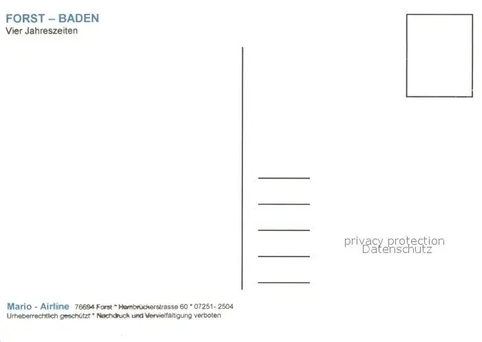 Forst_Baden Kategorie Alte Ansichtskarten Postkarten bx49271 Forst_Baden Vier Jahreszeiten Fliegeraufnahmen Forst_Baden postalisch nicht gelaufen nach 1965 Erhaltung siehe scans [FriedD77]