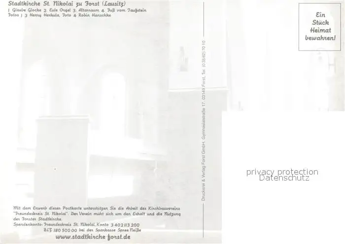 Forst_Lausitz Stadtkirche St Nikolai Glaube Glocke Eule Orgel Altarraum Taufstein Forst_Lausitz postalisch nicht gelaufen nach 1965 Erhaltung siehe scans [WerneD78] WernPID7