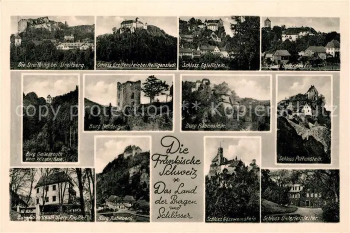 Fraenkische_Schweiz Burgen und Schloesser der Region Fraenkische Schweiz postalisch nicht gelaufen 1921-1965 Erhaltung siehe scans [FriedD77] Frierer