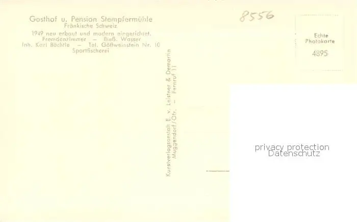 Fraenkische_Schweiz Gasthof Pension Stempfermuehle Fraenkische Schweiz postalisch nicht gelaufen 1921-1965 Erhaltung siehe scans [WerneD78] WernPID7