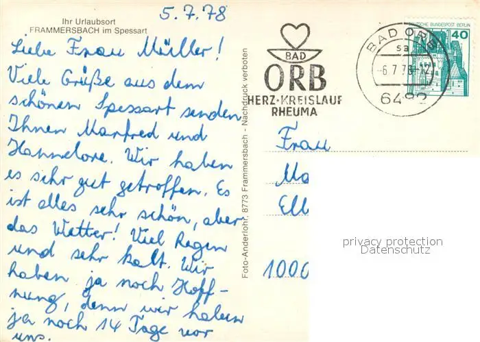 Frammersbach Stadtpanorama Motiv mit Kirche Wappen Frammersbach postalisch gelaufen 1978 Erhaltung siehe scans [FriedD77] Frierer