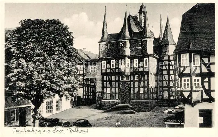 Frankenberg_Eder Rathaus Altstadt Fachwerkhaeuser Frankenberg Eder postalisch nicht gelaufen 1921-1965 Erhaltung siehe scans [FriedD77] Frierer