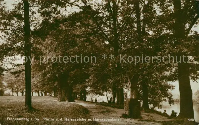 Frankenberg_Sachsen Partie an der Harraseiche mit Harrasdenkmal Frankenberg Sachsen postalisch nicht gelaufen 1921-1965 Erhaltung siehe scans [FriedD77] Frierer