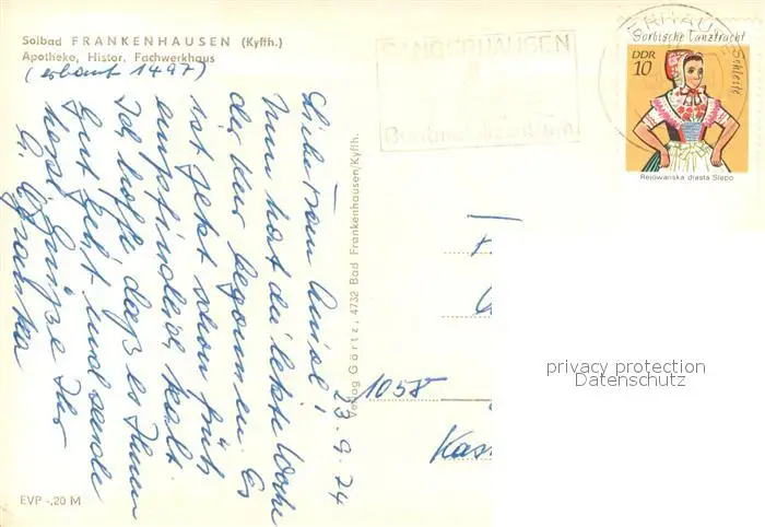 Frankenhausen_Bad Apotheke Historisches Fachwerkhaus Frankenhausen_Bad postalisch gelaufen 1974 Erhaltung siehe scans [LiesaD40] LiesID40