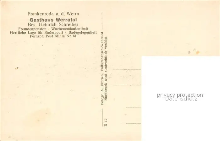 Frankenroda Gasthaus Werratal Werrapartie Frankenroda postalisch nicht gelaufen 1921-1965 Erhaltung siehe scans [WerneD78] WernPID7