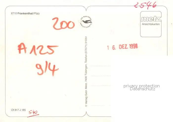 Frankenthal__Pfalz Kirche Stadtplatz Fussgaengerzone Rathaus postalisch nicht gelaufen nach 1965 Erhaltung siehe scans [WerneD78] WernPID7