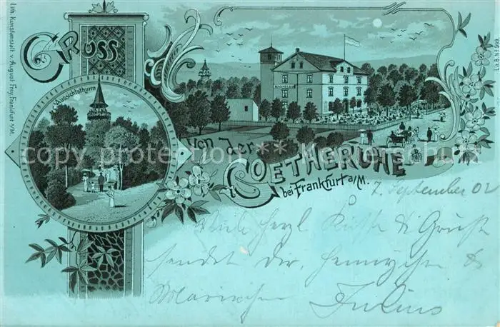 Frankfurt Main Kategorie Alte Ansichtskarten Postkarten bx75875 Frankfurt_Main Goetheruhe Frankfurt Main postalisch gelaufen 1902 Erhaltung siehe scans [KathaD81]