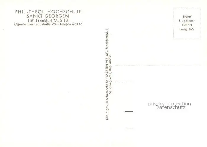 Frankfurt_Main Hochschule Sankt Georgen Frankfurt Main postalisch nicht gelaufen nach 1965 Erhaltung siehe scans [NatalD47] NataID47