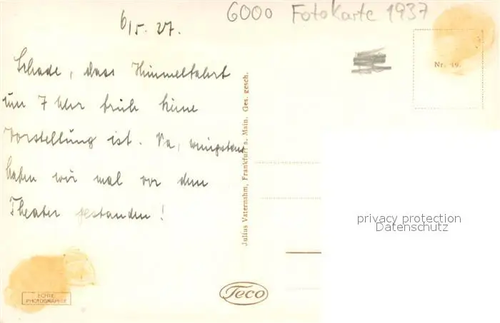 Frankfurt_Main Opernhaus Frankfurt Main postalisch nicht gelaufen 1937 Erhaltung siehe scans [WerneD78] WernPID7